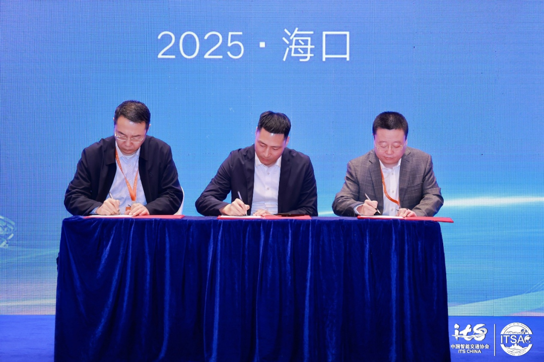 注:天翼交通常务副总经理赵建军(中)、中国科学院空天信息创新研究院办公室主任陆鸣(左)、中科时空科技(北京)有限公司董事长张恺忠(右)代表签署
